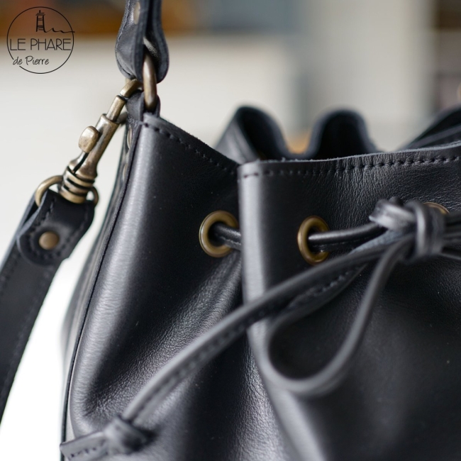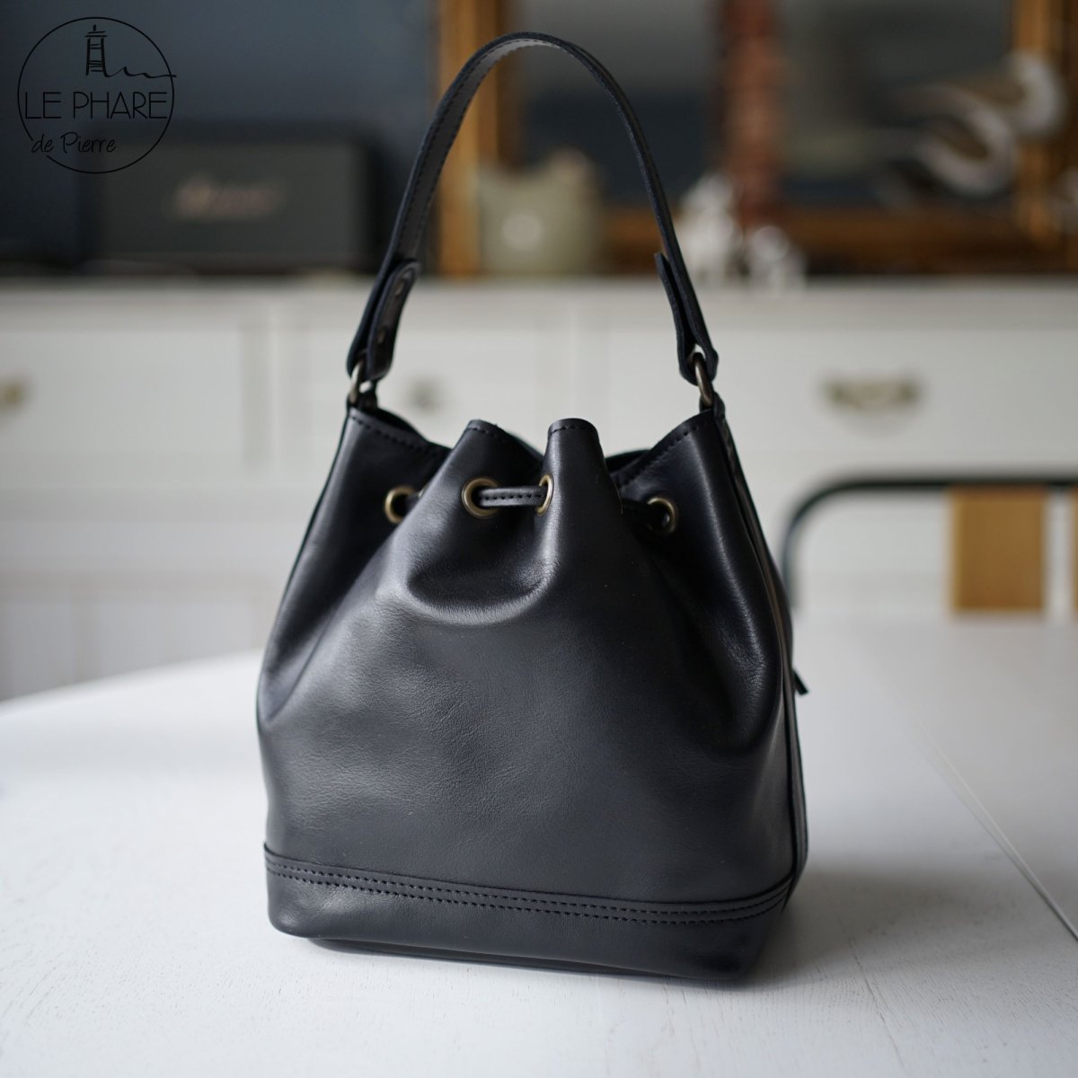 Ce sac seau en cuir est un modèle phare, réalisé dans le détail et la précision. Les surpiqûres apparentes structurent la matière et révèlent un travail couture exigeant, où chaque ligne à sa place.