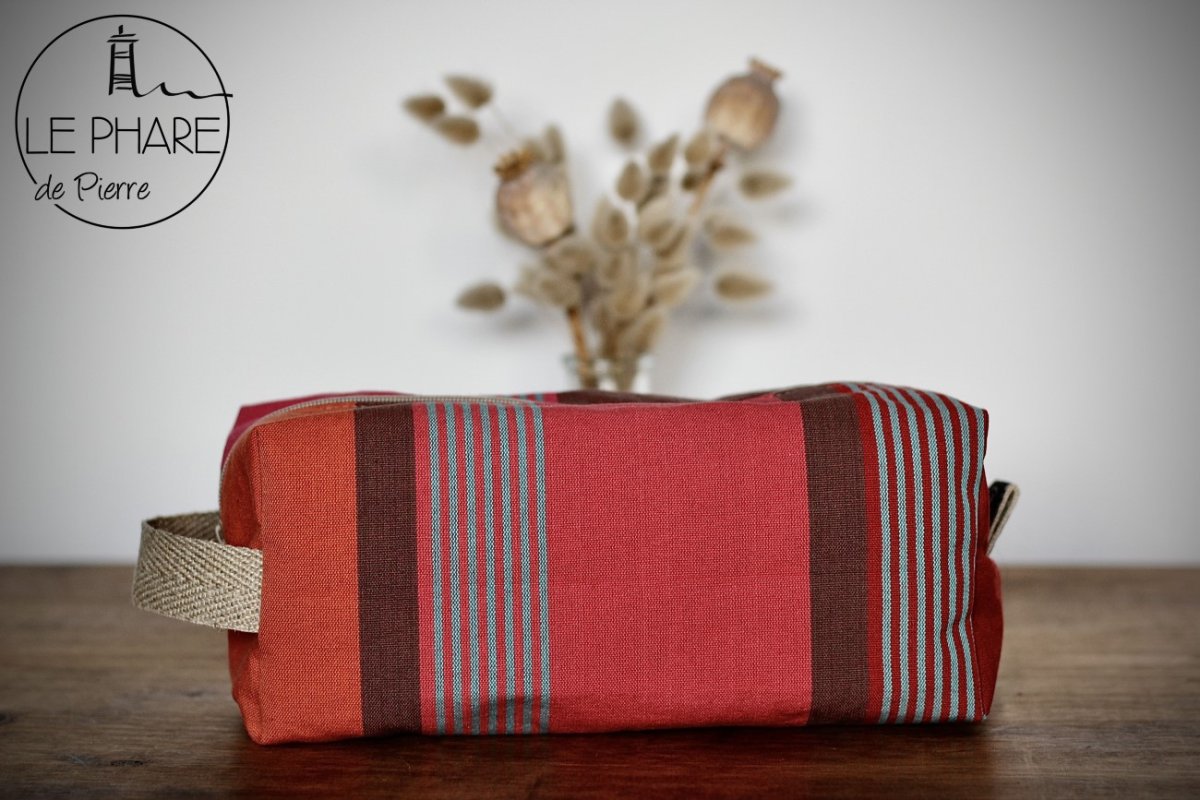 Pratique et élégante, la trousse de toilette Le Basque vous accompagnera dans tous vos voyages.
